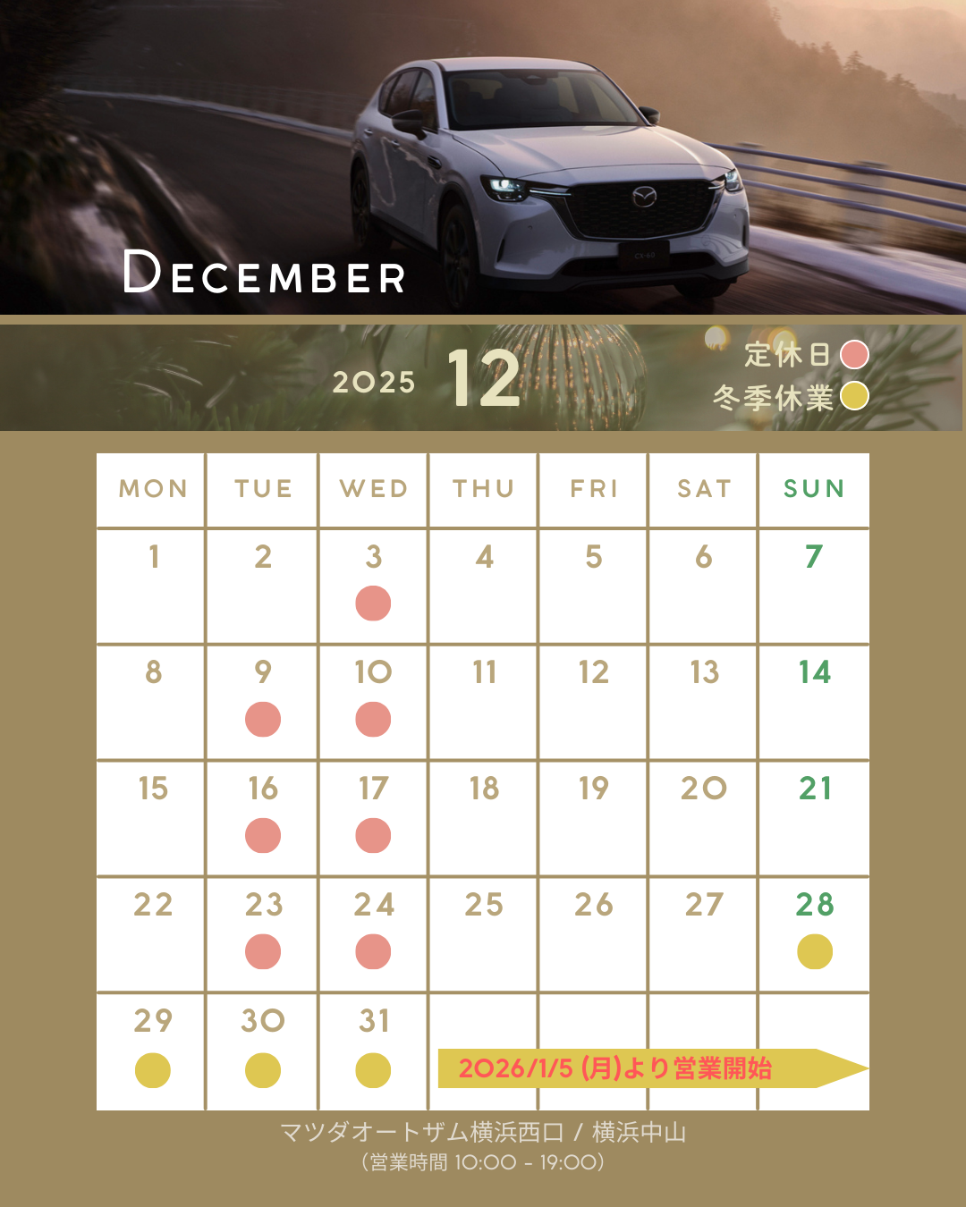 2025年12月)営業日のご案内